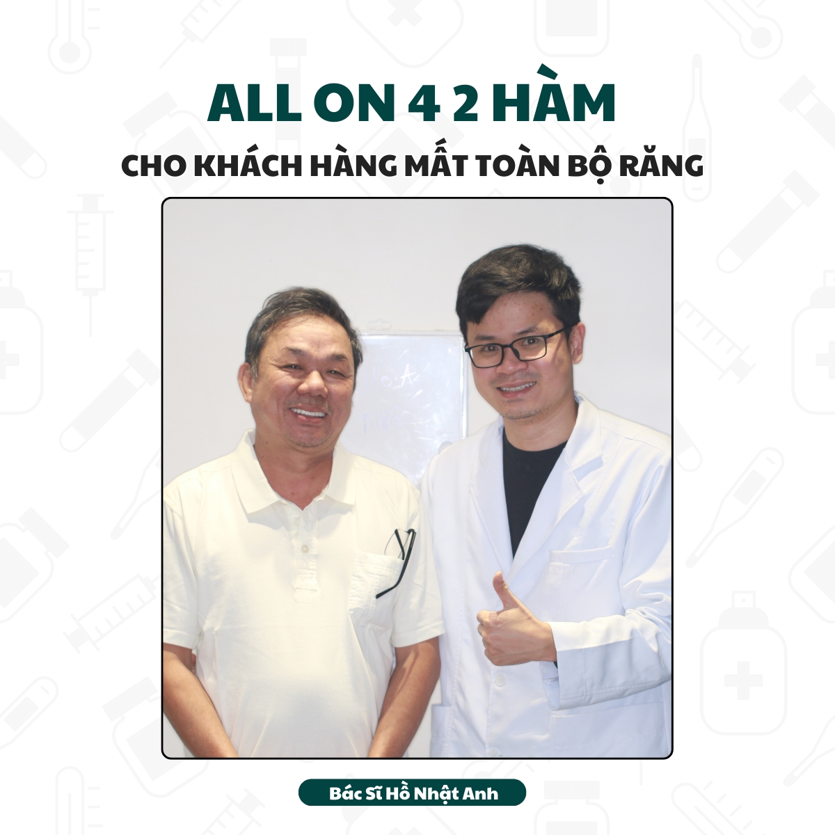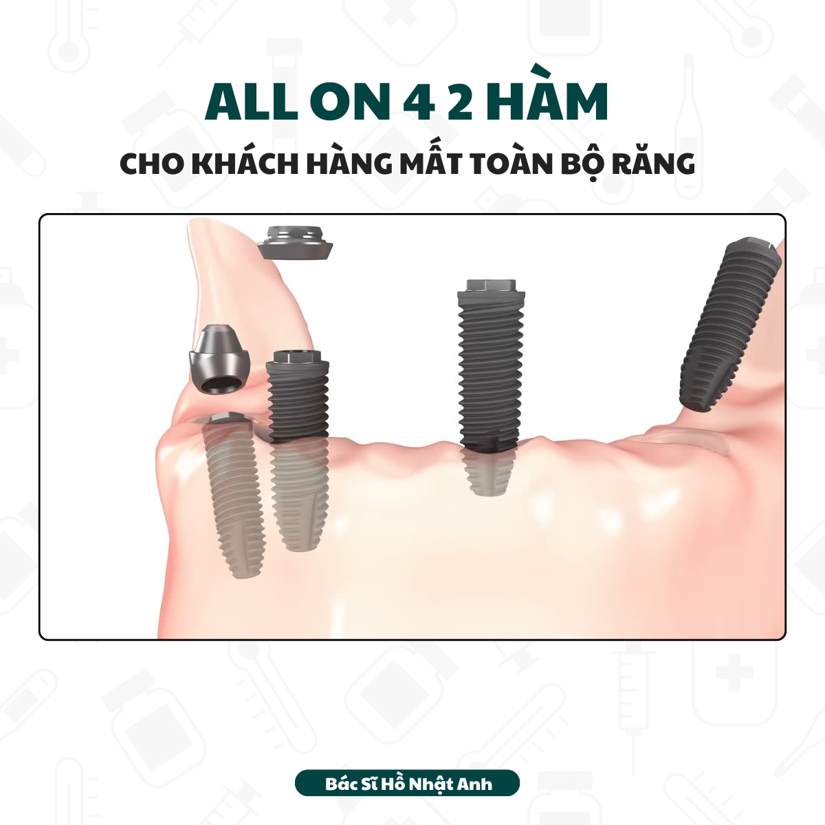 Với hơn 10 năm kinh nghiệm trong lĩnh vực cấy ghép Implant, tôi – Bác sĩ Hồ Nhật Anh, cam kết mang đến cho bạn nụ cười tự tin và chất lượng điều trị tối ưu.